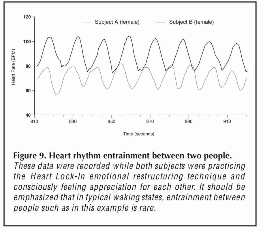 ただし下のグラフにあるように、ポジティブな感情を互いに持てば、心臓がシンクロするようだ。