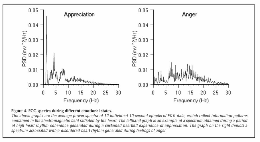 心臓のリズムと脳のα波は自然とシンクロすることが分かっているが、特に心にポジティブな感情を思い浮かべているときは、心拍のリズムが非常に規則正しくなり、その結果、α波のリズムも心臓にシンクロし、規則正しいものになるという。